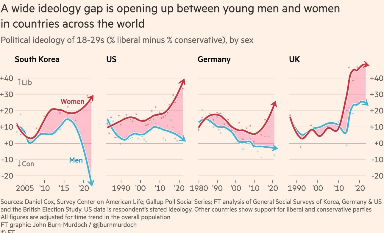 Here we see the reason for Werry’s law. As the weaker sex, women innately seek security, if not from their fathers and husbands then from the paternalistic state. Everything they have in life is provided for them by men and secured for them by men. Men will always use violence to stake out territory, and women will always seek to maintain the status quo to compensate for their vulnerability. They naturally follow, for good or ill, and so there is always a strong pull for them to choose what is safe over what is right. As Joel Webbon puts it, that which is acceptable is prioritized more highly by them than that which is true, and so “NPC” in their case stands for Naturally Pursue Consensus. This conciliatory instinct is a good thing in their designated roles as wives and mothers, but when the state usurps the authority of men over their families, women become the most fanatical defenders of the state. This is why, in a time of moral crisis, with courage in short supply, the average female vote is far to the left of the average male vote.